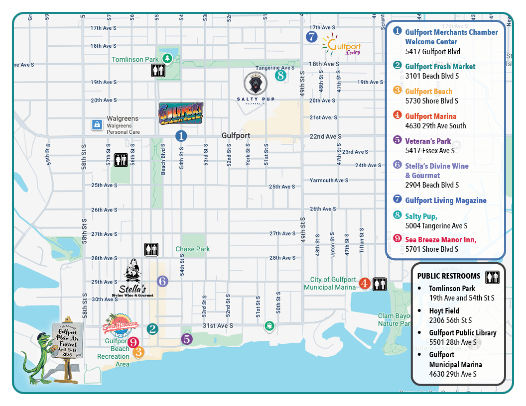 The Gulfport Merchants Chamber is proud to support local and regional artists while showcasing the artistic vibe that makes Gulfport so special. Whether you’re an artist ready to paint, a collector looking for fresh new work, or a visitor who simply loves the arts, this is a can’t-miss week in Gulfport.
